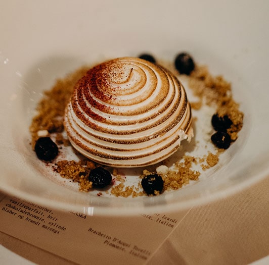 I Riddersalen blir dere møtt av vakker dekor og oppdekking med friske blomsterdekorasjoner på alle bordene. Vi tilbyr små trær i Riddersalen som slottsgartneren har felt i skogen, og det skaper en helt eventyrlig stemning. I starten av bryllupsmiddagen presenterer vår kokk og vinservitør kveldens meny og viner, slik at gjestene vet hva de kan glede seg til. Kveldens taler og innslag presenteres av deres utvalgte toastmaster, som gjennom hele kvelden er i tett dialog med dagens ansvarlige hovmester. Bryllupsmenyen serveres med utvalgte viner mellom planlagte taler og innslag. Bryllupsmiddagen blir også avsluttet av toastmaster, som vil annonsere brudevalsen i Dansesalen eller i slottshagen under åpen himmel og med stjerneskudd.